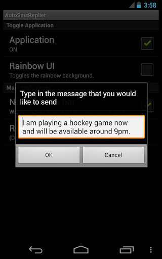 SMS Replier is an app for Android, which responds with a personalized text whenever you receive a phone call or text message. It has a very simple user interface and is easily accessed through the notification status bar, when enabled.